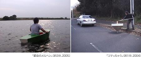 「都会のメルヘン」荒川で鯉を捕まえ、その鯉を自作の船にヒモで結んで、その船に乗るといった一連の映像。約3分,